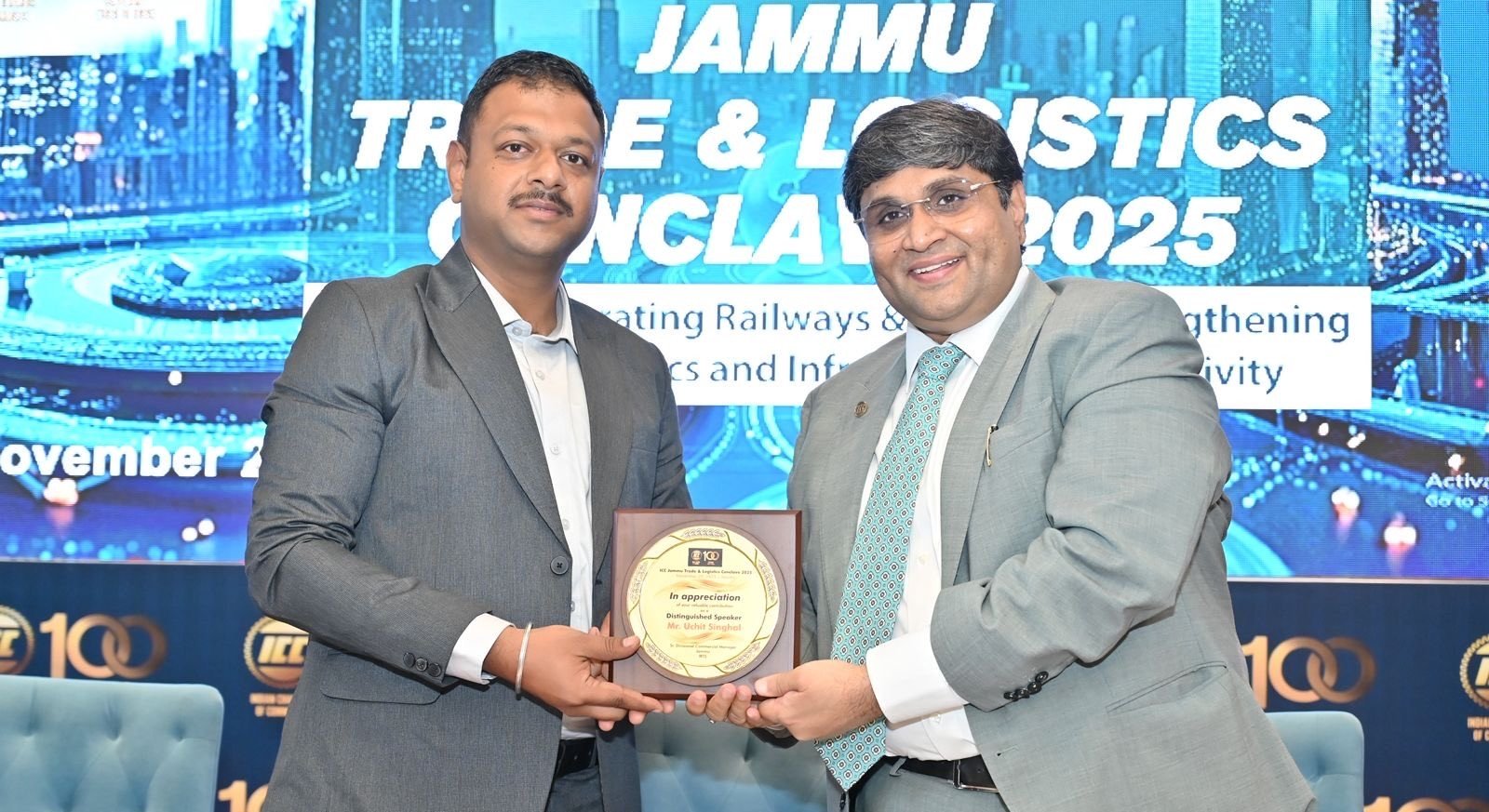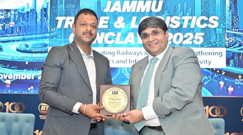 Jammu, Nov 21: The Indian Chamber of Commerce has felicitated Uchit Singhal, the senior divisional commercial manager of Jammu division of the Northen Railway, for leading the fastest multi-sectoral railway initiatives and strengthening freight connectivity in the Union Territory.