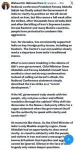 “What is troubling is the silence of J&K’s own government. Instead of calling out Israel’s attack clearly, the statement described the incident merely as a ‘recent development’,” Para wrote.